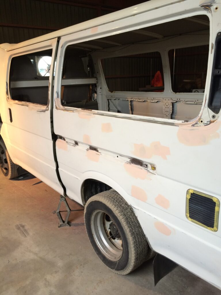 今回入庫したこちらの車両も、長年の使用で側面には無数の小さなエクボや歪みが生じていました。