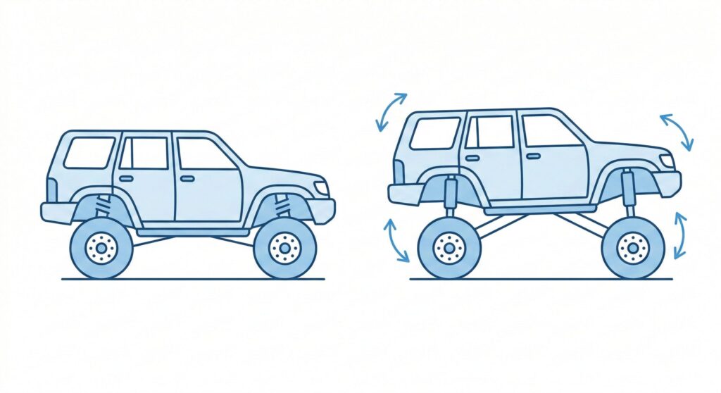 この記事では、リフトアップでふらつきが生じるメカニズムを紐解きながら、ハンドリング性能を損なわないための実践的な対策を解説します。